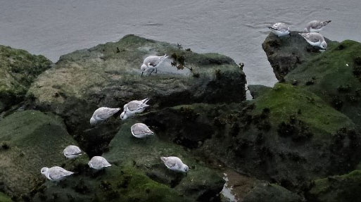 Imágenes de especies por el estuario: cormorán moñudo (ver foto de Fran), cormorán grande, garza real, garceta común, chorlito gris, chorlitejo grande, andarríos chico, zarapito real (ver fotos de Josluga), correlimos tridáctilo (ver foto de Fran), gaviotas reidoras y patiamarillas, martín pescador (ver fotos de Josluga).